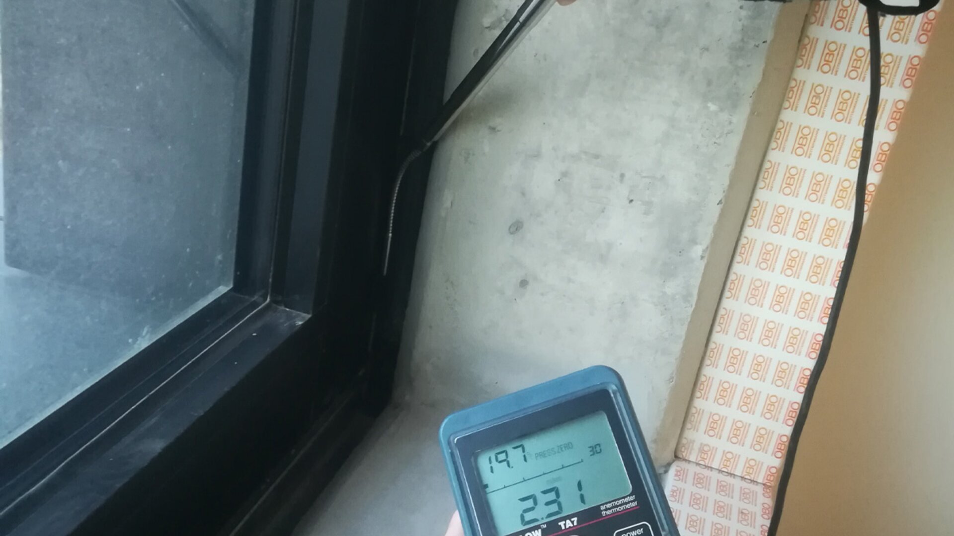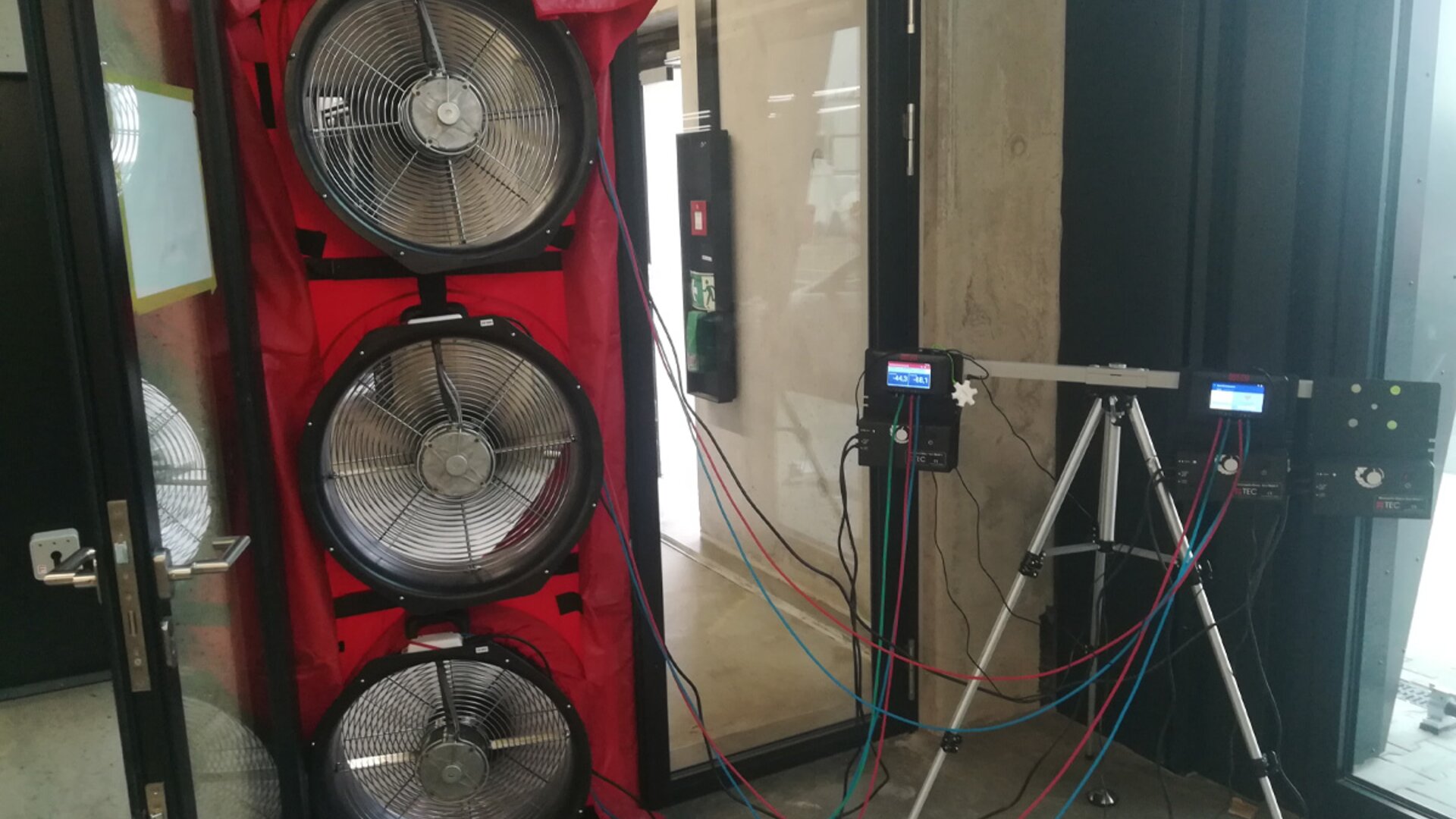 Das Messverfahren, genannt Blower-Door-Test, lässt auf eine korrekte bzw. mangelhafte Montage der Luftdichtheitsebene schließen. Gemessen wird die Luftwechselrate (n50-Wert) bei einer Druckdifferenz von 50 Pascal zwischen innen und außen.