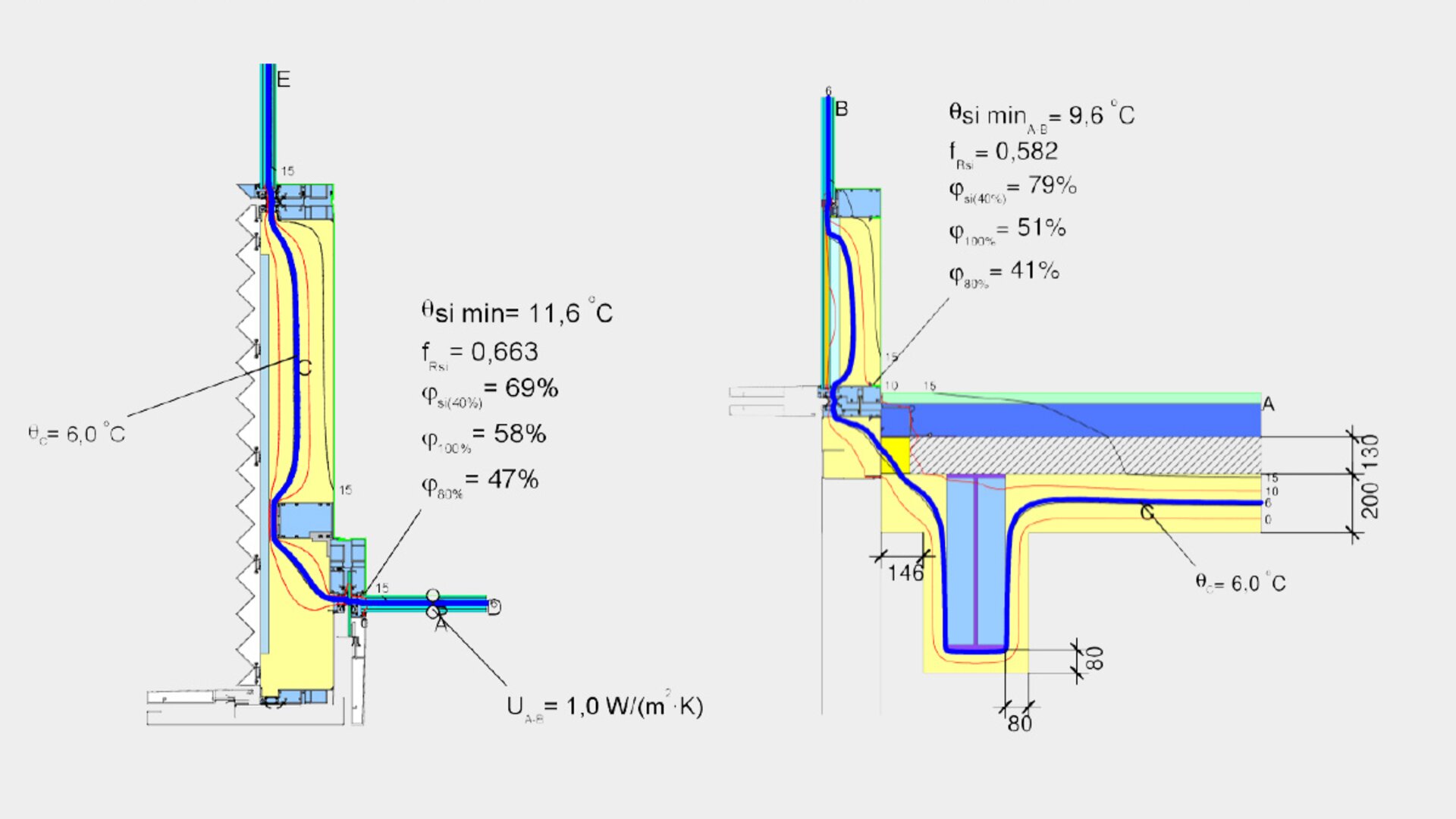 Wir unterstützen Sie bei der Untersuchung von Wärmebrücken bis zur energieeffizienten Bauteiloptimierung von Fensterrahmen- und Fassadenprofilen sowie deren Bauteilanschlusssituationen und erstellen für Sie folgende Leistungen: