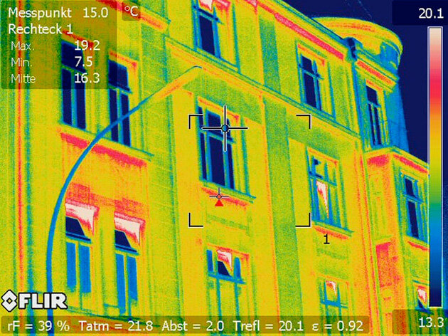Die bildhafte Darstellung der Temperaturverteilung von Gebäuden ist ein hervorragendes Verfahren zur Beurteilung der thermischen Qualität. Mittels der Thermografie werden die Oberflächentemperaturen der Gebäudehülle gemessen. Die Ergebnisse lassen auf das Vorhandensein von Undichtigkeiten, die Qualität der Wärmedämmung und Wärmebrücken schließen. Als Messwerkzeug verwenden wir effektive Infrarotbildkameras. Zur Erzielung möglichst aussagekräftiger Ergebnisse erfolgen die Untersuchungen vorzugsweise in der Heizperiode. Die Thermografiemessung führen wir im Rahmen von Bestandsuntersuchungen sowie von Sanierungs- und Neubauprojekten durch.