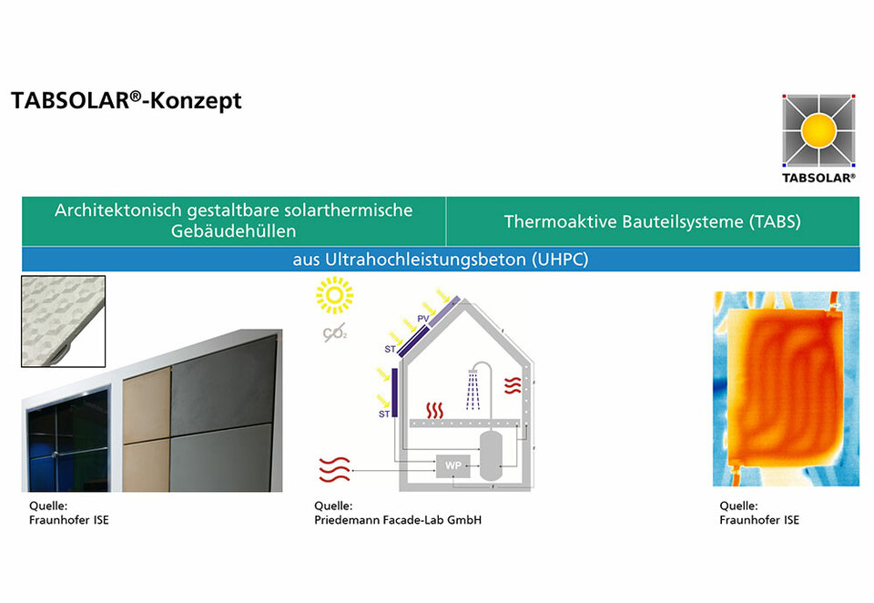 Together with the ©Fraunhofer Institute for Solar Energy Systems ISE and other joint project partners, GiB mbH is putting this forward-looking corporate philosophy into practice and creating a milestone in the development of new components and systems for sustainable heating in new and existing buildings. The aim of the new TABSOLAR III research project is to build on the two previous BMWi projects TABSOLAR and TABSOLAR II and to advance the development of applicable products. In future, this innovation is to become a systematic overall solution for sustainable heating and cooling - the basis for this is the production of flow-through components made of ultra-high performance concrete (UHPC). These components will one day be used as solar thermal façades or low-temperature sources for heat pumps or as thermoactive building component systems (TABS) inside buildings.