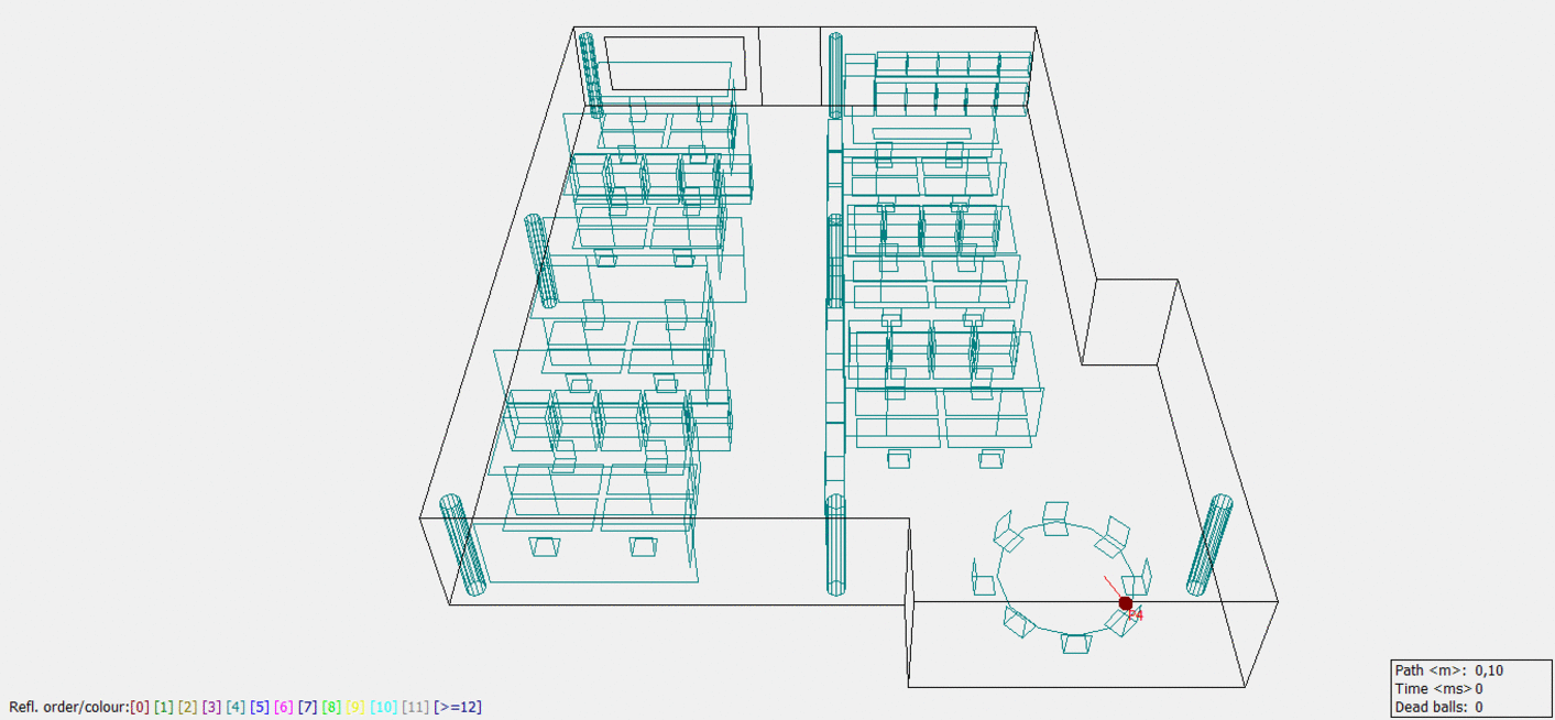 - determination of room acoustic parameters according to ISO 3382-3 and VDI 2569